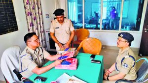 हाजीपुर. जिले में अपराध नियंत्रण एवं बेहतर पुलिसिंग को लेकर शुक्रवार को एसपी ललित मोहन शर्मा ने बरांटी थाना का निरीक्षण किया. इस दौरान एसपी ने थाना के विभिन्न पंजियों का निरीक्षण करने के साथ ही थानाध्यक्ष एवं पुलिस पदाधिकारियों को कई आवश्यक दिशा निर्देश दिये. एसपी ने थानाध्यक्ष को निर्देश देते हुए कहा कि क्षेत्र में नियमित गश्ती बढ़ाने तथा शराब धंधेबाजों के विरुद्ध कार्रवाई करें. थाना का निरीक्षण करने पहुंचे एसपी ने थानाध्यक्ष को निर्देश देते हुए कहा कि थाना में दर्ज सभी लंबित मामलों में फरार चल रहे आरोपितों को गिरफ्तार करें. फरार वारंटी एवं कुर्की मामले के निष्पादन में तेजी लाए तथा रात्रि गश्ती में सघन वाहन चेकिंग अभियान चला कर अपराधियों पर पैनी नजर रखे. एसपी ने जेल से छुटे बदमाशों को थाना बुलाकर नियमित क्रीमिनल परेड कराने का निर्देश दिया. बताया गया कि एसपी ने थाना में बने महिला हेल्प डेस्क की समीक्षा की तथा डेस्क में तैनात पुलिस पदाधिकारी को शिकायत लेकर आने वाली महिलाओं के साथ मित्रवत व्यवहार कर उनकी समस्याओं का समाधान करने का निर्देश दिया. इस दौरान थानाध्यक्ष के साथ अन्य पुलिस पदाधिकारी व अन्य मौजूद थे.