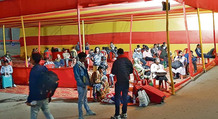 सर्कुलेटिंग एरिया में बनाया गया वेटिंग पंडाल