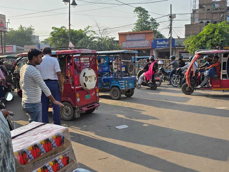 हाजीपुर. शहर के कई प्रमुख चौक-चौराहों पर इ-रिक्शा चालकों का एक तरह से कब्जा होने से आम लोगों को आने जाने में भारी फजीहत का सामना करना पड़ रहा है. ये ई-रिक्शा और ऑटो चालक शहर में सड़कों का अतिक्रमण कर सुदृढ़ ट्रैफिक व्यवस्था के लिए एक तरह से चुनौती बने हुए हैं. शहर में कई ऐसे प्रमुख स्थान हैं, जो जाम का प्रमुख स्पॉट हैं. कई प्रमुख स्थानों पर पुलिसकर्मियों की तैनाती तो दिखती है, लेकिन वे सड़क किनारे किसी दुकान में बैठकर इ-रिक्शा चालकों और अतिक्रमणकारियों की कारगुजारी देखते रहते हैं.