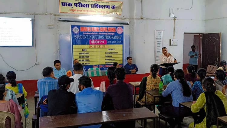 हाजीपुर. जमुनी लाल महाविद्यालय में बुधवार को तीसरे दिन सत्र 2025- 2029 के वाणिज्य संकाय में नामांकित छात्र-छात्राओं का दीक्षारंभ-सह-स्टूडेंट इंडक्शन कार्यक्रम हुआ. इसकी अध्यक्षता प्राचार्य प्रो वीरेंद्र कुमार के की. प्राचार्य का स्वागत पुष्प गुच्छ से डॉ लावण्या नूपुर, डॉ निर्मला कुमारी और डॉ वंदना ने किया. कार्यक्रम की शुरुआत कुल गीत गायन से हुई. कार्यक्रम का संचालन वाणिज्य की डॉ निर्मला कुमारी ने किया.