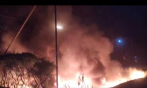 नगर थाना क्षेत्र के अंजानपीर चौक के समीप का मामला, नगर थाना पुलिस और फायर ब्रिगेड ने तीन घंटे की मशक्कत के बाद पाया काबू