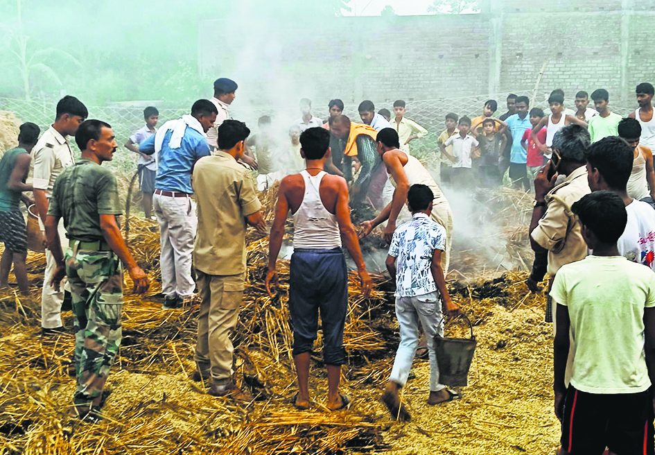 राघोपुर. रुस्तमपुर थाना क्षेत्र की रुस्तमपुर पंचायत के वार्ड संख्या 18 में शनिवार की शाम एक खलिहान में रखे गेहूं के बोझों में अचानक आग लग गयी. खलिहान में आग लगते ही वहां अफरातफरी मच गयी. आग लगने की सूचना मिलते ही आसपास के लोग घटनास्थल पर जमा हो गये और मोटर पंप, चापाकल आदि की सहायता से आग बुझाने का प्रयास करने लगे. वार्ड सदस्य प्रतिनिधि राकेश कुमार ने तुरंत रुस्तमपुर थाना के दमकल कर्मियों को घटना की जानकारी दी. सूचना मिलते ही दमकल कर्मी घटनास्थल पर पहुंचे और स्थानीय लोगों की मदद से घंटों की कड़ी मशक्कत के बाद आग पर काबू पाया. हालांकि, तब तक खलिहान में रखे गेहूं के 218 बोझे जलकर राख हो गये. जानकारी के अनुसार, वार्ड संख्या 18 निवासी सतीश रजक के खलिहान में रखे गेहूं के बोझों में शनिवार की शाम अचानक आग लग गयी. तेज हवा के झोंके की वजह से देखते ही देखते आग की लपटों ने विकराल रूप धारण कर लिया और देखते ही देखते गेहूं के सभी बोझों को अपनी चपेट में ले लिया. आग की तेज लपटें देख काफी संख्या में आसपास के लोग जुट गये और आग बुझाने का प्रयास करने लगे. आग को बेकाबू होते देख, इसकी सूचना दमकल कर्मियों को दी गयी. सूचना पर पहुंचे दमकल कर्मियों ने स्थानीय लोगों की सहायता से काफी मशक्कत के बाद आग पर काबू पाया, लेकिन तबतक खलिहान में रखा 218 बोझा गेहूं जलकर राख हो चुका था. अगलगी की इस घटना के बाद किसान सतीश रजक का रो-रोकर बुरा हाल है. उन्हें अब अपने परिवार के एक साल तक के भरण-पोषण की चिंता सता रही है. सतीश रजक ने बताया कि उसने कड़ी मेहनत से गेहूं की फसल उगाई थी और कटाई के बाद थ्रेसिंग के लिए खलिहान में रखा था, लेकिन अचानक लगी आग ने उसके सारे अरमानों पर पानी फेर दिया. वार्ड सदस्य प्रतिनिधि ने राघोपुर अंचलाधिकारी से पीड़ित किसान को सरकारी सहायता उपलब्ध कराने की मांग की है.