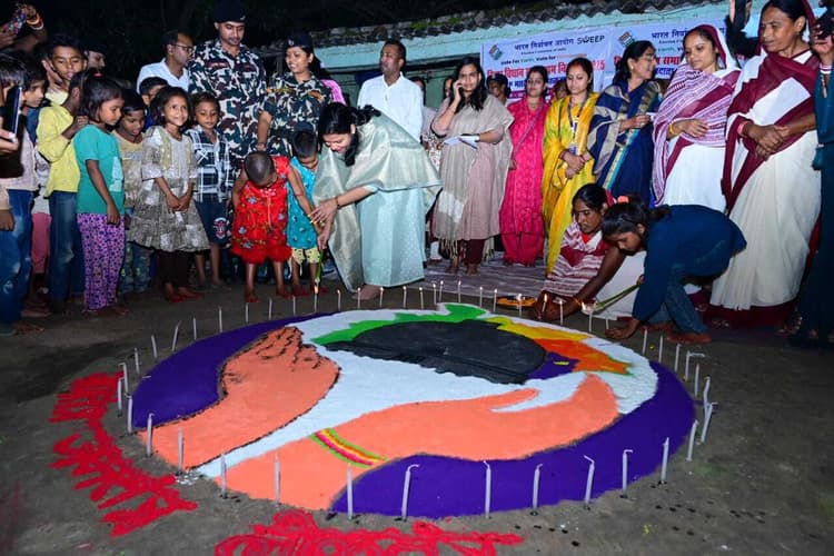 सराय. मतदाता जागरूकता कार्यक्रम के तहत डीएम वर्षा सिंह ने सराय थाना क्षेत्र के जहांगीरपुर पटेढ़ा गांव में रविवार की देर रात महादलित बस्ती में रात्रि चौपाल का आयोजन किया. इस दौरान मतदाता जागरूकता कार्यक्रम का आयोजन किया. रात्रि चौपाल में उपस्थित मतदाताओं एवं बच्चों के द्वारा स्वीप (मतदाता जागरूकता कार्यक्रम) गतिविधि के तहत रंगोली बनायी गयी. गणतंत्र-जनतंत्र-लोकतंत्र के लोगो को रंगोली और कैंडल से सजाया गया, जो मनमोहक और आकर्षण का केंद्र रहा. प्रखंड कर्मी द्वारा रचित स्वीप गीत को सुनंदा ने स्वर दिया. डीएम के निर्देश पर क्विज प्रतियोगिता का आयोजन किया गया, जिसमें वोटरों से ज्यादा बच्चों की भागीदारी सराहनीय रही. स्कूली बच्चों के द्वारा मतदान दल के रूप में पूरी प्रकिया का चित्रण किया गया, जिसमें डीएम ने वोटर बन कर मतदान किया. वोटरों के उत्साह से प्रभावित होकर उन्होंने कुछ स्लोगन को उच्चारित किया. पहले मतदान, फिर जलपान, ओकरा बाद कोनो काम. उपस्थित सभी वोटरों द्वारा हामी भरी गई की पहिले करवई मतदान तब करवई कोनों काम. इस मौके पर डीपीओ, निर्वाची पदाधिकारी, भूमि सुधार उप समाहर्ता, कला संस्कृति पदाधिकारी, बीडीओ भगवानपुर, सीडीपीओ, सीओ, प्रखंड कल्याण पदाधिकारी, थाना प्रभारी की सहभागिता रही.