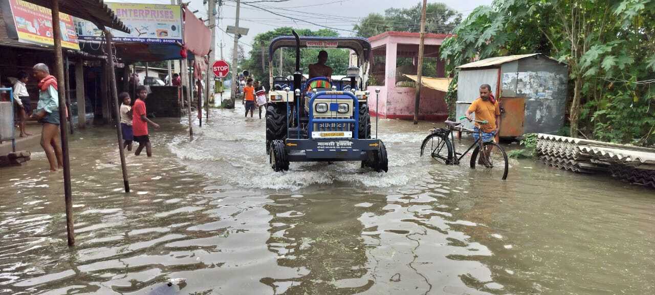 प्रखंड का लगभग हर गांव बाढ़ के पानी में डूबा है. सैकड़ों एकड़ में लगी फसल पानी में डूबे हुए हैं. प्रखंड के मुख्य सड़क से सभी गांव का संपर्क भंग हो गया है. मुख्य सड़क पर गाड़ी के बजाए नावें चल रही हैं. राघोपुर प्रखंड अंचल, बीआरसी परिसर, रेफरल अस्पताल, सीडीपीओ कार्यालय, मोहनपुर में नवनिर्मित सामुदायिक स्वास्थ्य सहित प्रखंड के सभी विद्यालयों में लबालब पानी भरा हुआ है. प्रखंड के रुस्तमपुर से बीरपुर जाने वाली मुख्य मार्ग और कई जगह चार फीट पानी सड़क पर होने के कारण आवागमन पूरी तरह बंद हो गया है. लोग जान जोखिम में डालकर किसी तरह एक स्थान से दूसरे स्थान जा रहे हैं. पशुपालक पशुओं के लिए जान जोखिम में डालकर एक स्थान से दूसरे स्थान चारा लाने के लिए जाते हैं. सरकारी स्तर पर अब तक बाढ़ प्रभावित इलाके में आम लोगों के लिए किसी तरह की कोई सुविधा नहीं दी जा रही है.सैकड़ों दुकानों में घुसा बाढ़ का पानी, सामान बर्बाद