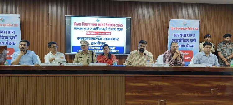 इस महत्वपूर्ण बैठक में हाजीपुर विधानसभा क्षेत्र के लिए सामान्य प्रेक्षक अभिनव चन्द्रा, लालगंज विधानसभा क्षेत्र के लिए सामान्य प्रेक्षक विकास कुन्दल, वैशाली विधानसभा क्षेत्र के लिए सामान्य प्रेक्षक बल्लवंत सिंह, महुआ विधानसभा क्षेत्र के लिए सामान्य प्रेक्षक जे कृति, राजापाकर विधानसभा क्षेत्र के लिए सामान्य प्रेक्षक जीवन बाबू के राघोपुर विधानसभा क्षेत्र के लिए सामान्य प्रेक्षक अजय गुप्ता, महनार विधानसभा क्षेत्र के लिए सामान्य प्रेक्षक आकाश दीप एवं पातेपुर विधानसभा क्षेत्र के लिए सामान्य प्रेक्षक आशीष कुमार चौहान के अलावा जिला निर्वाचन पदाधिकारी सभी डीएम सभी विधानसभा के रिटर्निंग पदाधिकारी व राजनैतिक दल के प्रतिनिधि व अभ्यर्थी उपस्थित रहे.डिस्क्लेमर: यह प्रभात खबर समाचार पत्र की ऑटोमेटेड न्यूज फीड है. इसे प्रभात खबर डॉट कॉम की टीम ने संपादित नहीं किया है