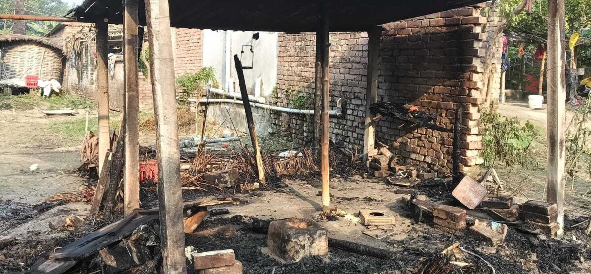 hajipur news. आग लगने से झोपड़ीनुमा घर जलकर खाक