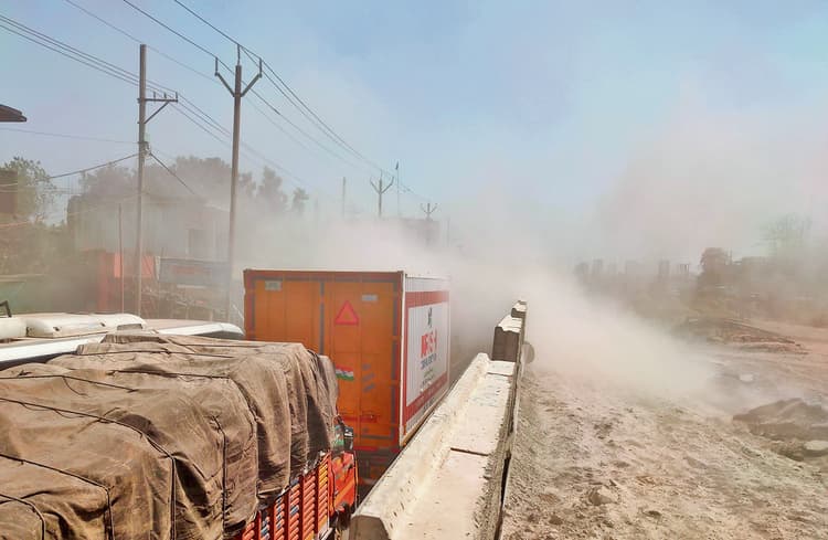 हाजीपुर. शहर में कहीं टूटी हुई सड़कें, तो कहीं सड़क समेत विभिन्न निर्माण परियोजनाओं को लेकर सड़क पर उड़ती धूल की वजह से लोगों को जीना दुश्वार हो गया है. सड़क पर उड़ती धूल की वजह से राहगीरों को काफी परेशानी झेलनी पड़ रही है. सबसे ज्यादा परेशानी बाइक चालकों को हो रही है. तेज हवा या बड़ी गाड़ियों के गुजरने की वजह से अचानक धूल का गुबार उठ जाता है, इसकी वजह से उन्हें सामने देखने में काफी परेशानी होती है. शहर की सड़कों व एनएच पर उड़ती धूल की वजह से एक ओर जहां लोगों को आवागमन में परेशानी झेलनी पड़ती है, वहीं इसकी वजह सांस और आंख संबंधित बीमारियों का खतरा भी काफी हद तक बढ़ गया है. सेंट्रल पॉल्यूशन बोर्ड के आंकड़ों के अनुसार रविवार को हाजीपुर शहर का एक्यूआइ 112 रहा. हवा की यह गुणवत्ता स्वास्थ्य के दृष्टिकोण से खतरनाक मानी जाती है.