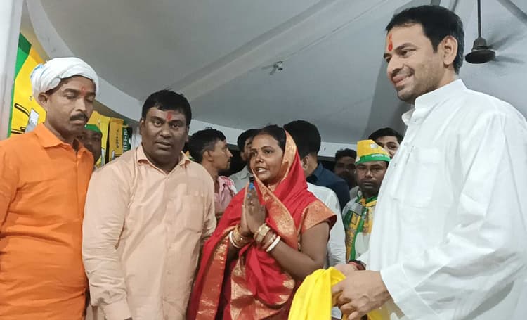 महुआ. महुआ विधानसभा क्षेत्र से चुनाव लड़ रही निर्दलीय प्रत्याशी सरिता साह ने जनशक्ति जनता दल को समर्थन करने की घोषणा की है. इस दौरान तेजप्रताप यादव ने अंगवस्त्र भेंट कर उनका स्वागत किया. तेजप्रताप चेहराकला प्रखंड के सुमेरगंज गांव में प्रमोद झा के घर पर जनसंपर्क के दौरान पहुंचे थे. यहीं पर निर्दलीय प्रत्याशी सरिता साह पहुंची और उन्हें माला पहनाकर अपना समर्थन देने की घोषणा की. इस दौरान उन्होंने मतदाताओं से तेजप्रताप के पक्ष में मतदान करने की अपील की. इस मौके पर तेजप्रताप ने निर्दलीय प्रत्याशी का स्वागत करते हुए सम्मानित भी किया. वहीं, राजद नेत्री नीलम कुशवाहा ने पति अरविंद भगत के साथ तेजप्रताप यादव के समक्ष राजद छोड़कर जनशक्ति जनता दल का दामन थाम लिया. इनका भी स्वागत करते हुए तेजप्रताप ने इन्हें पार्टी में शामिल कर लिया. इस मौके पर जिलाध्यक्ष सुरेश यादव, अनिल चौधरी, सत्येंद्र प्रसाद यादव, अविनाश कुमार, विवेक प्रकाश, सत्येंद्र राय, उपेंद्र यादव, अमन यादव, मो सादिक, अरुण पासवान, अर्जुन पासवान, संजय साह, विजय पटेल के साथ अन्य लोग शामिल थे.
