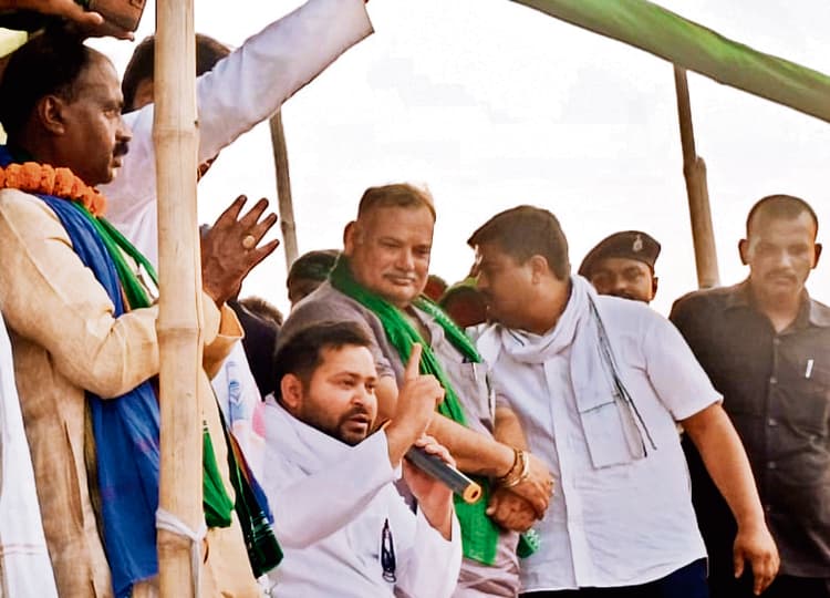 लालगंज नगर. लालगंज में आयोजित चुनावी सभा में नेता प्रतिपक्ष पूर्व डिप्टी सीएम तेजस्वी यादव ने महंगाई व बेरोजगारी के मुद्दे पर एनडीए व मोदी सरकार पर तीखा हमला किया. उन्होंने संविधान व आरक्षण पर खतरा मंडराने की बात दुहराते हुए कहा कि संविधान को बदलने का प्रयास किया जा रहा है. अपने हाथ में लिए संविधान को लोगाें को दिखाते हुए कहा कि इसे बचाने के लिए महागठबंधन के उम्मीदवार को विजयी बनाने की अपील की. वे लालगंज में हाजीपुर लोकसभा सीट से महागठबंधन समर्थित राजद उम्मीदवार शिवचंद्र राम के समर्थन में आयोजित चुनावी सभा में बोल रहे थे. इस दौरान उन्होंने लोगों से हाजीपुर से शिवचंद्र राम व वैशाली लोकसभा सीट से मुन्ना शुक्ला को जीत का आशीर्वाद देने की अपील की. तेजस्वी ने कहा कि राजद ए टू जेड की पार्टी है. हम सभी वर्ग के लोगों को सम्मान देते हैं. कहा कि आज देश की जनता व युवा महंगाई व बेरोजगारी की मार झेल रही है. जब हमें काम करने का मौका मिला, तो बिहार में पांच लाख सरकारी नौकरी दी गयी. अगर हमारी सरकार बनती है, तो एक करोड़ युवाओं को नौकरी दी जायेगी. 500 रुपये में गैस सिलेंडर, गरीब परिवार की महिलाओं को प्रतिवर्ष एक लाख रुपये, दो सौ यूनिट मुफ्त बिजली दी जायेगी. सभा में वीआईपी प्रमुख पूर्व मंत्री मुकेश सहनी ने कहा कि भाजपा ने उनके विधायकों को तोड़कर अपने में मिला लिया. उन्होंने भाजपा पर संविधान विरोधी व गरीब विरोधी होने का आरोप लगाया. कहा कि हम लोगों को उनके झांसे में नहीं आना है और पूरे बिहार से इंडिया गठबंधन के उम्मीदवारों को जीताकर लोकसभा में भेजना है. तभी हमारे देश के संविधान की रक्षा हो सकती है. सभा को विधायक डॉ मुकेश रौशन, राजद प्रवक्ता चितरंजन गगन, पूर्व सांसद अनिल सहनी आदि ने संबोधित किया. सभा के अध्यक्षता पार्टी के जिलाध्यक्ष बैद्यनाथ सिंह चंद्रवंशी ने की. सभा के बाद मुकेश सहनी ने कॉमर्स कॉलेज से बसंता जहानाबद, भटौली भगवान, पौरा होते हुए हाजीपुर की ओर रोड शो किया.