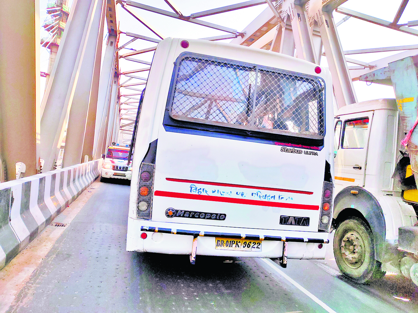 हाजीपुर. गांधी सेतु पर रोज-रोज लगने वाले जाम से लोगों को राहत मिलती नहीं दिख रही है. गांधी सेतु पर लगने वाले जाम से निजात पाने के लिए जिला प्रशासन पिछले तीन-चार महीनों से कवायद कर रहा है, लेकिन सारी कवायदें पूरी तरह से फेल होती दिख रही है. रोज-रोज लगने वाले जाम से हजारों यात्रियों को रोजाना परेशानी झेलनी पड़ रही है. वहीं, जाम में जब कभी कोई एंबुलेंस फंसती है, तो एंबुलेंस में सवार मरीज व उनके परिजनों की जान अटक जाती है. लोग रोजाना घंटों जाम की परेशानी झेल रहे हैं, वहीं पुलिस-प्रशासन जाम के आगे पूरी तरह से बेबस दिख रहा है. शुक्रवार की सुबह गांधी सेतु पर भीषण जाम की समस्या उत्पन्न हो गयी. जाम के दौरान रांग साइड में वाहनों को घुसा देने गांधी सेतु का दोनों लेन पूरी तरह पैक हो गया. करीब तीन-चार घंटों तक सेतु पर गाड़ियां रेंगती रहीं. इस दौरान कई एंबुलेंस भी जाम में फंसी रही. बाइक चालक तो किसी तरह आगे-पीछे कर और ओवरटेक कर जाम सेतु पार कर जा रहे थे. लेकिन ऑटो, कार, बस आदि बड़े वाहन घंटों जाम में फंसे रहे. बाइक चालकों को भी गांधी सेतु पार करने में करीब डेढ़ से दो घंटे का समय लग रहा था.