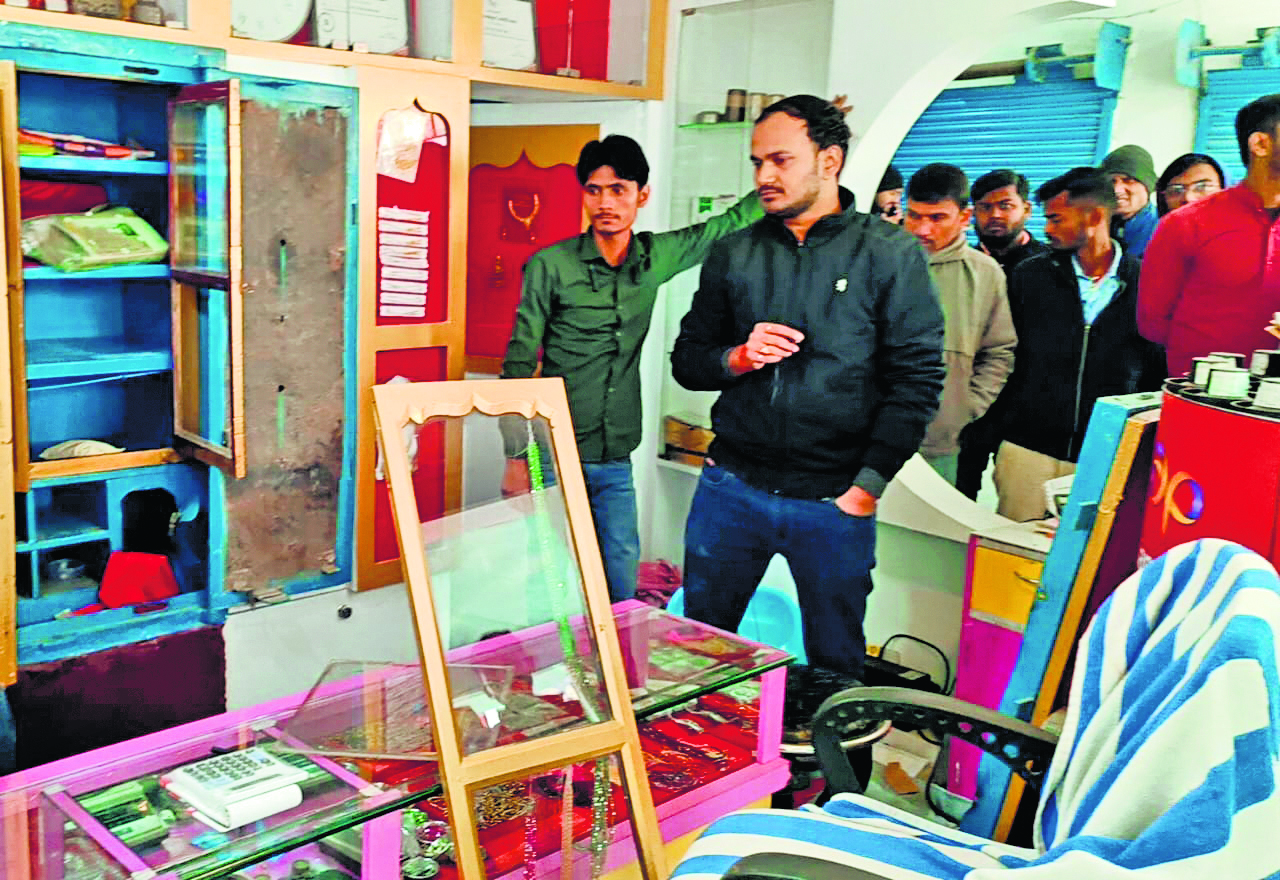 महुआ. महुआ थाना क्षेत्र के मुजफ्फरपुर रोड स्थित एक ज्वेलरी व पेंट दुकान का शटर तोड़ कर चोरों ने बुधवार की रात करीब बाइस लाख रुपये की ज्वेलरी व पेंट की चोरी कर ली. गुरुवार की सुबह चोरी की घटना की सूचना मिलते ही वहां आसपास के दुकानदारों की भीड़ जुट गयी. घटना की सूचना पर पहुंची पुलिस ने दुकानदार से घटना की जानकारी लेने के बाद काफी देर तक घटनास्थल पर जांच की. जानकारी के अनुसार महुआ के एक चैनल के पत्रकार प्रभात गुप्ता की मुजफ्फरपुर रोड में स्थित शिव कुमार ज्वेलर्स व पेंट की दुकान है. बुधवार की रात चोरों ने दुकान का शटर तोड़कर दुकान में रखे करीब दस लाख रुपये के 150 ग्राम सोना तथा करीब आठ लाख रुपये के चांदी की चोरी कर ली. वहीं, पेंट दुकान से करीब चार लाख रुपये की पेंट की चोरी कर ली. चोरों इस दौरान सीसीटीवी की डीवीआर की भी चोरी कर ली. गुरुवार की सुबह करीब दस बजे प्रभात का भाई प्रभाकर कुमार दुकान खोलने पहुंचा, तो उसकी नजर टूटे हुए शटर पर पड़ी. इसकी सूचना पर आसपास के दुकानदार मौके पर पहुंच गये. दुकानदार ने जब दुकान के अंदर देखा, तो सारे कीमती सामान गायब थे. पीड़ित दुकानदार ने इसकी शिकायत महुआ थाना की पुलिस से की है. वहीं इस मामले में थानाध्यक्ष सुभाष प्रसाद ने बताया कि दुकान से चोरी की सूचना मिली है. सूचना मिलते ही पुलिस टीम ने मौके पर पहुंच कर जांच की. पुलिस मामले की जांच कर रही है. जल्द ही चोरों को गिरफ्तार कर लिया जायेगा.