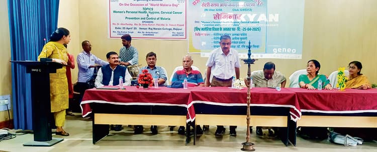 हाजीपुर. राज नारायण महाविद्यालय, हाजीपुर में शुक्रवार को ””महिलाओं का व्यक्तिगत स्वास्थ्य, स्वच्छता, गर्भाशय-ग्रीवा कैंसर और मलेरिया की रोकथाम एवं नियंत्रण”” विषय पर जागरूकता सत्र सह संगोष्ठी का आयोजन किया गया. कार्यक्रम का आयोजन महाविद्यालय की आइक्यूएसी, एनएसएस, एनसीसी और गृहविज्ञान विभाग द्वारा रोटरी क्लब कंकड़बाग, पटना के सहयोग से किया गया. यह आयोजन पीएम-उषा योजना के तहत ””””लैंगिक समावेश और समानता पहल”””” के अंतर्गत किया गया. कार्यक्रम की शुरुआत सांस्कृतिक समिति द्वारा प्रस्तुत कुलगीत और स्वागत गीत से हुई. डॉ रूपाश्री जमुआर ने स्वागत भाषण दिया, जबकि विषय-प्रवेश डॉ सुषमा कुमारी ने कराया. मंच संचालन डॉ निकिता राज और धन्यवाद ज्ञापन डॉ. सुमन सिन्हा ने किया. कार्यक्रम में कंपनी 4/32 एनसीसी कैडेट्स और एनएसएस वालंटियरों ने प्रभात, आशीष और भानु प्रकाश के नेतृत्व में सक्रिय भूमिका निभाई. रोटरी क्लब की टीम में पूर्व जिला गवर्नर डॉ राकेश कुमार, अध्यक्ष राज किशोर सिंह, निर्वाचित अध्यक्ष अजीत कुमार सिन्हा, सचिव गोविंद कुमार सहित सुधांशु कुमार, दीप्ति सहाय, मधु प्रकाश, पूर्व सिविल सर्जन डॉ ओपी श्रीवास्तव और निरंजन कुमार शामिल रहे. चिकित्सा विशेषज्ञों के रूप में डॉ अलका पांडे (पीएमसीएच) और डॉ अनिता कुमारी (एनएमसीएच) ने विचार रखे.