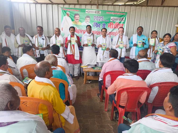 हाजीपुर. मुख्यमंत्री नीतीश कुमार के आह्वान पर पंचायत में बूथ स्तरीय बैठक का आयोजन सोमवार को वैशाली विधानसभा के गोरौल की दो पंचायतों कटरमाला और सोंधोदुल्ह में पंचायत अध्यक्ष की अध्यक्षता में किया गया. बैठक में मुख्य अतिथि के रूप में जदयू के जिलाध्यक्ष सुभाष चंद्र सिंह शामिल हुए. बैठक को संबोधित करते हुए जिलाध्यक्ष ने कहा कि जदयू एक ऐसी पार्टी है, जिसने हर बूथ पर सामाजिक समीकरण का ख्याल रखते हुए हर जात-धर्म के लोगों को पार्टी संगठन, बीस सूत्री, विभिन्न आयोगों एवं बूथ कमेटी में स्थान दिया है. बैठक में 2025 से 2030 फिर से नीतीश और 2025 में 225 के नारे लगाए गये और मुख्यमंत्री के किये गये कार्यों को जन-जन में पहुंचाने का निर्देश दिया गया. इस दौरान गंगा पर सबसे लंबा एक्स्ट्रा डोज केबल स्टे पुल राघोपुर में बनने पर मुख्यमंत्री के प्रति आभार व्यक्त किया गया. जिलाध्यक्ष ने बताया कि मुख्यमंत्री नीतीश कुमार के द्वारा कच्ची दरगाह–बिदुपुर छह लेन गंगा पुल परियोजना का लोकार्पण सोमवार को किया गया है, जो 19 किमी लंबी संपूर्ण परियोजना है. बैठक में मुख्य रूप से कार्यक्रम प्रभारी सुरेंद्र राजभर, प्रखंड अध्यक्ष भगवान सिंह,अविनाश कुमार लड्डू, मुखिया रमेश चन्द्र साह और मुन्नी देवी, त्रिविक्रम प्रसाद, अमन मेहता, सचिन कुमार, लक्ष्मी कुमारी, वीर सिंह पटेल, बुधन सिंह, राजकुमार सिंह सहित बूथ कमेटी के सदस्य मौजूद रहे.