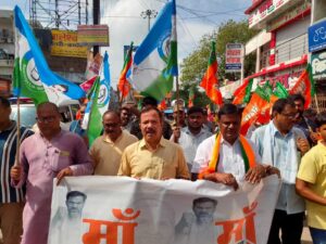 हाजीपुर. प्रधानमंत्री नरेन्द्र मोदी पर अमर्यादित टिप्पणी मामले को गुरुवार के दिन एनडीए घटक दलों के नेता और कार्यकर्ता सड़क पर उतरे. इस दौरान कार्यकर्ताओं ने बाजार को बंद कराया और जम कर राहुल -तेजस्वी के विरोध में नारेबाजी की. हाजीपुर में बिहार बंद की अगुआई भारतीय जनता पार्टी महिला मोर्चा कर रही थी. इस दौरान हाजीपुर विधायक अवधेश सिंह, भाजपा के दक्षिणी जिलाध्यक्ष अजय कुशवाहा सहित एनडीए के घटक दलों के नेता और कार्यकर्ता शामिल ते। इस मौके पर जिलाध्यक्ष दक्षिणी ने कहा कि जिस तरह राहुल गांधी लगातार अपने वोटर अधिकार यात्रा के दौरान प्रधानमंत्री नरेंद्र मोदी को तू -तड़ाक किया. यह न केवल राजनीतिक गरिमा पर हमला है, बल्कि भारतीय लोकतंत्र की परंपराओं का अपमान है. राहुल गांधी और तेजस्वी यादव में गरीब मां के बेटे का प्रधानमंत्री बनने से इन दोनों राजकुमारों को पच नहीं पा रहा है. इस अवसर पर हाजीपुर विधायक अवधेश सिंह ने कहा कि कांग्रेस पार्टी से जुड़े नेताओं ने देश के प्रधानमंत्री नरेंद्र मोदी के लिए 107 से अधिक बार अभद्र भाषा का प्रयोग किया है. कांग्रेस और राजद के कार्यकर्ताओं ने जिस तरह से प्रधानमंत्री नरेंद्र मोदी के खिलाफ अभद्र भाषा का प्रयोग किया गया, ये प्रधानमंत्री पर नहीं बल्कि देश के 140 करोड़ जनता की भावनाओं पर हमला है. इस दौरान एनडीए कार्यकर्ताओं ने विभिन्न चौक चौराहों पर प्रदर्शन किया. महिला मोर्चा की जिलाध्यक्ष कल्याणी कुशवाहा के नेतृत्व में महिला कार्यकर्ताओं ने जम कर राहुल और तेजस्वी के विरोध में नारेबाजी की. इस दौरान रालोमो के प्रदेश पदाधिकारी कमल प्रसाद सिंह, महिला मोर्चा की महामंत्री ममता साहू, सरिता कुमारी, जिला उपाध्यक्ष मंजू उपाध्याय, श्वेता आनंद, सोनी कुमारी, माला कुमारी, जिला मंत्री पम्मी ठाकुर, मनीषा देवी, जिला प्रवक्ता कुमारी प्रेमलता, कमला देवी, रेखा सिंह, विधु देवी, प्रो अजीत सिंह, गंगा सिंह, अशोक राय, प्रदेश के नेता संजीव कुशवाहा, मुकेश कुशवाहा, राजेश चौधरी, रंजीत यादव, सितेश रंजन ,भाजपा के जिला महामंत्री रविंद्र सिंह, प्रिय रंजन दास, जिला उपाध्यक्ष मिथिलेश तिवारी, बबीता सिंह ,बच्ची मिश्रा, प्रियदर्शनी दुबे, जिला कोषाध्यक्ष सतीश जायसवाल,जिला कार्यालय मंत्री राकेश कुमार, जिला मीडिया प्रभारी रंजीत बाबुल, आईटी सेल के संयोजक निखिल कुमार बंटी,ननक राय, सोनी, सुबोध सिंह, विजय सिंह कुशवाहा, दीपू सिंहा, प्रवीण कुमार, अल्पसंख्यक प्रकोष्ठ के जिला संयोजक असलम आलम आदि सैकड़ों भाजपा के कार्यकर्ता उपस्थित थे.