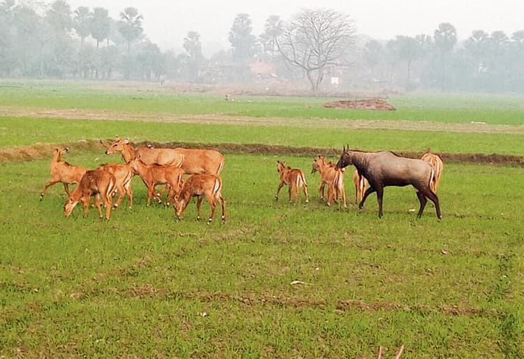 लालगंज . लालगंज प्रखंड क्षेत्र के दर्जनों गांव के किसान नीलगायों से परेशान हैं. करताहां बुजुर्ग, पंचदमिया, पुरखौली, टोटहां, खरौना, गुरमिया, भटौली भगवान आदि दर्जनों गांव के किसान नीलगाय के उत्पात से काफी परेशान दिख रहे हैं. नीलगाय किसानों की फसल को बर्बाद कर रहे हैं. नीलगायों के उत्पात से सबसे अधिक परेशान फूलगोभी बीज और गेहूं उत्पादक किसान परेशान दिख रहे हैं. उनके खेतों में घुसकर नीलगाय उनकी फसलों को चट कर जा रहे हैं. वहीं, तंबाकू की खेती करने वाले किसान भी काफी परेशान हैं. उनके खेतों से गुजरने के दौरान नीलगाय फसल को रौंद कर बर्बाद कर रहे दे रहे हैं. किसानों के अनुसार नीलगायों का झुंड गेहूं के साथ-साथ हरी सब्जी की फसल को बर्बाद कर दे रहे हैं. नीलगायाें के उत्पात की वजह से किसानों के समक्ष अपने फसल को बचाये रखने की चुनौती खड़ी हो गयी है. इस क्षेत्र के किसान काफी मात्रा में गेहूं, मक्का, तंबाकू के अलावा बैगन, फूलगोभी, टमाटर आदि के फसलों की खेती करते हैं. किसानों के अनुसार नीलगायों के आतंक की वजह से खेती का सौदा उनके लिए काफी महंगा साबित होने लगा है. किसानों ने प्रशासन से नीलगायों के उत्पात से निजात दिलाने की मांग की है. अखिल भारतीय किसान महासभा की प्रेमा देवी ने जिला प्रशासन किसानों के हित में नीलगायों को पकड़वा कर, किसी अन्यत्र निर्जन स्थान पर या फिर पास के जंगलों में छोड़ने की मांग की है. साथ ही पिछले दस साल से नीलगाय की वजह से हो रही क्षति का मुआवजा किसानों को सरकार से दिलाने की मांग की है. बिहार किसान संघर्ष मोर्चा के अवधेश कुमार बताते हैं कि किसान महंगे दर पर खाद बीज व कीटनाशकों की खरीदारी कर खेती करते हैं. उन फसलों को नीलगाय बर्बाद कर देते हैं. किसान विजय कुशवाहा ने सरकार से नीलगायों को पकड़ कर जंगल में छोड़ने की मांग की है.