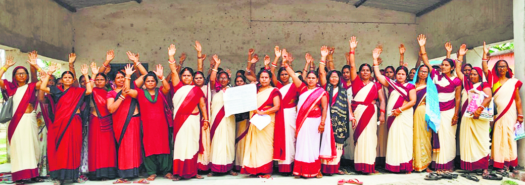 लालगंज. लालगंज में गुरुवार को बिहार आंगनबाड़ी कर्मचारी संघ के बैनर तले लालगंज प्रखंड क्षेत्र की आंगनबाड़ी सेविका-सहायिकाओं ने अपनी विभिन्न मांगों को लेकर सीडीपीओ कार्यालय, लालगंज के समक्ष एक दिवसीय धरना-प्रदर्शन किया. कार्यक्रम की अध्यक्षता करते हुए संघ की प्रखंड अध्यक्ष सुभद्रा कुमारी ने कहा कि हाईकोर्ट के आदेश के बावजूद अब तक सेविकाओं को सरकारी कर्मी घोषित नहीं किया गया, न ही ग्रेच्युटी का लाभ मिला. उन्होंने आरोप लगाया कि कार्य के दौरान वरीय अधिकारियों द्वारा सेविकाओं का उत्पीड़न किया जाता है.