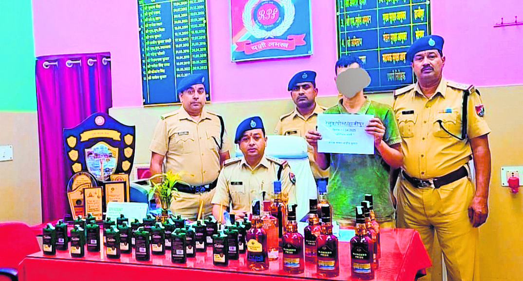 हाजीपुर. रेलवे स्टेशन के प्लेटफार्म संख्या एक के दक्षिणी फूट ओवरब्रिज के पास से आरपीएफ ने लगभग 11 लीटर विदेशी शराब के साथ एक धंधेबाज को गिरफ्तार कर आवश्यक कार्रवाई के बाद जीआरपी के हवाले कर दिया. जीआरपी इस मामले में गिरफ्तार धंधेबाज के विरुद्ध प्राथमिकी दर्ज कर जेल भेज दिया है. आरपीएफ ने यह कार्रवाई ऑपरेशन सतर्क अभियान के तहत की है. इस संबंध में आरपीएफ प्रभारी इंस्पेक्टर साकेत कुमार ने बताया कि ऑपरेशन सतर्क अभियान के तहत शुक्रवार को उप निरीक्षक नरसिंह यादव, राकेश कुमार तथा पुलिस बल शिशुपाल, विनय आदि के साथ स्टेशन परिसर में सघन चेकिंग की जा रही थी. इसी दौरान स्टेशन के प्लेटफार्म संख्या एक के दक्षिणी छोड़ स्थित फूट ओवरब्रिज के पास एक युवक को भारी बैग के साथ जाते देखा गया. संदेह होने पर पुलिस बल के सहयोग से युवक को रोक कर पूछताछ की गयी. इस दौरान युवक द्वारा स्पष्ट जवाब नहीं दिए जाने पर पुलिस ने उसके बैग की तलाशी ली. तलाशी के दौरान उसके बैग से पुलिस ने 10.320 लीटर विभिन्न महंगे ब्रांड का विदेशी शराब बरामद किया गया. बरामद शराब की कीमत स्थानीय बाजार में लगभग 12420 रुपये बताया गया. प्रभारी इंस्पेक्टर ने बताया कि गिरफ्तार धंधेबाज की पहचान मुजफ्फरपुर जिले के मुसहरी थाना क्षेत्र के छपरा मेघ गांव निवासी स्व उमेश शर्मा के पुत्र संजीत कुमार के रूप में हुई है. पूछताछ के दाैरान गिरफ्तार धंधेबाज ने बताया कि वह उत्तर प्रदेश के बलिया से शराब लेकर मुजफ्फरपुर में सप्लाइ के लिए जा रहा था. इसी दौरान आरपीएफ के द्वारा पकड़ लिया गया. बरामद शराब को आरपीएफ ने जब्त कर लिया तथा गिरफ्तार धंधेबाज को आवश्यक कार्रवाई के लिए जीआरपी के हवाले कर दिया. बताया गया कि जीआरपी प्राथमिकी दर्ज कर धंधेबाज को जेल भेज दिया है.
