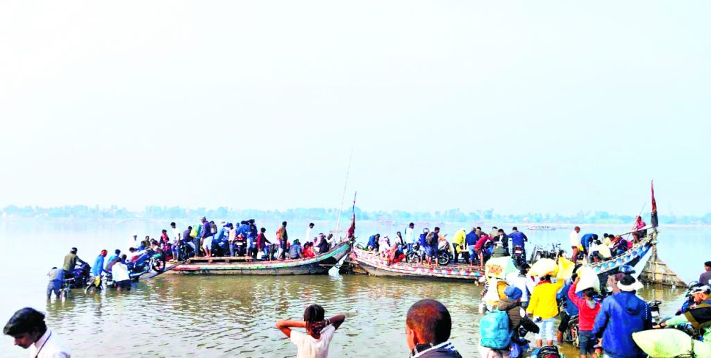 राघोपुर. बिदुपुर प्रखंड के जमींदारी एवं फतेहपुर घाट से खालसा चकौसन के लिए खुलने वाली नाव का परिचालन सुरक्षा मानकों की धज्जियां उड़ाते हुए किया जा रहा है. नाव पर क्षमता से अधिक यात्रियों को बैठाये जा रहे हैं. नाव पर क्षमता से अधिक यात्रियों को बैठाने की वजह से हर वक्त हादसे की आशंका बनी रहती है. भीषण ठंड में ठिठुरते हुए लोग नदी के ठंडे पानी से होकर नाव पर सवार होते हैं. यात्रियों से भरी नाव पर ही बाइक व अन्य सामान लोड कर दिया जाता है. मकर संक्रांति को लेकर घाटों पर आने जाने वाले लोगों की भीड़ काफी बढ़ गयी है. यात्रियों की भीड़ बढ़ने के साथ ही नाव पर ओवरलोडिंग व नाविकों की मनमानी चरम पर है. वहीं जमींदारी घाट एवं चकौसन के बीच गंगा नदी पर संवेदक के स्तर से पीपा पुल जोड़ने का कार्य काफी धीमी गति से चल रहा है. पीपा पुल चालू नहीं किए जाने के कारण लोग जान जोखिम में डालकर नदी में नाव से इस तरफ से उस तरफ आते जाते हैं.