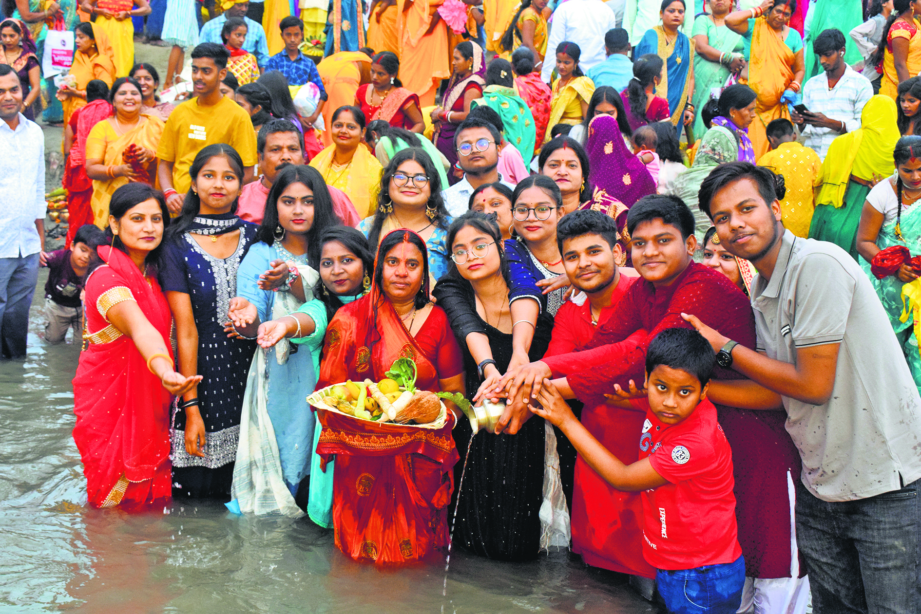 हाजीपुर . चैती छठ के चार दिवसीय अनुष्ठान के तीसरे दिन गुरुवार को छठव्रतियों ने गंगा-गंडक के विभिन्न घाटों पर अस्ताचलगामी सूर्य को अर्घ दिया. सूर्य उपासना के इस पर्व पर नदी घाटों, तालाबों और जलाशयों पर श्रद्धालुओं की भीड़ उमड़ पड़ी. भगवान भास्कर को अर्घ देने के लिए नगर के कौनहारा घाट पर सबसे अधिक भीड़ देखी गयी. छठ पर्व को लेकर शहर समेत जिले के विभिन्न स्थानों पर श्रद्धा और भक्ति का वातावरण बना रहा. खरना के बाद से 36 घंटे के निर्जला उपवास पर रहते हुए गुरुवार की सुबह से छठव्रती महिलाएं प्रसाद बनाने और सूप-दउरा सजाने के काम में जुटी रहीं. दोपहर के बाद छठ व्रती और श्रद्धालु अपने स्थानीय घाटों और तालाबों की ओर चल पड़े. सांध्य अर्घ के दौरान नगर के कौनहारा घाट, नमामि गंगे घाट, बूटन दास घाट, महेश्वर घाट, सीढ़ी घाट, पुराना गंडकपुल घाट, चित्रगुप्त घाट, कदंब घाट समेत अन्य नदी घाटों पर उत्सवी माहौल रहा. इस अवसर पर आवासीय परिसरों से लेकर नदी घाटों तक छठ मइया के गीत गूंजते रहे. उधर नगर के जढुआ बरईटोला स्थित हजही सूर्य पोखर पर छठव्रतियों और श्रद्धालुओं की भीड़ जुटी. आसपास के मुहल्लों से बड़ी संख्या में पहुंची व्रती महिलाओं ने पोखर के पानी में खड़े होकर डूबते सूर्य को अर्घ दिया.