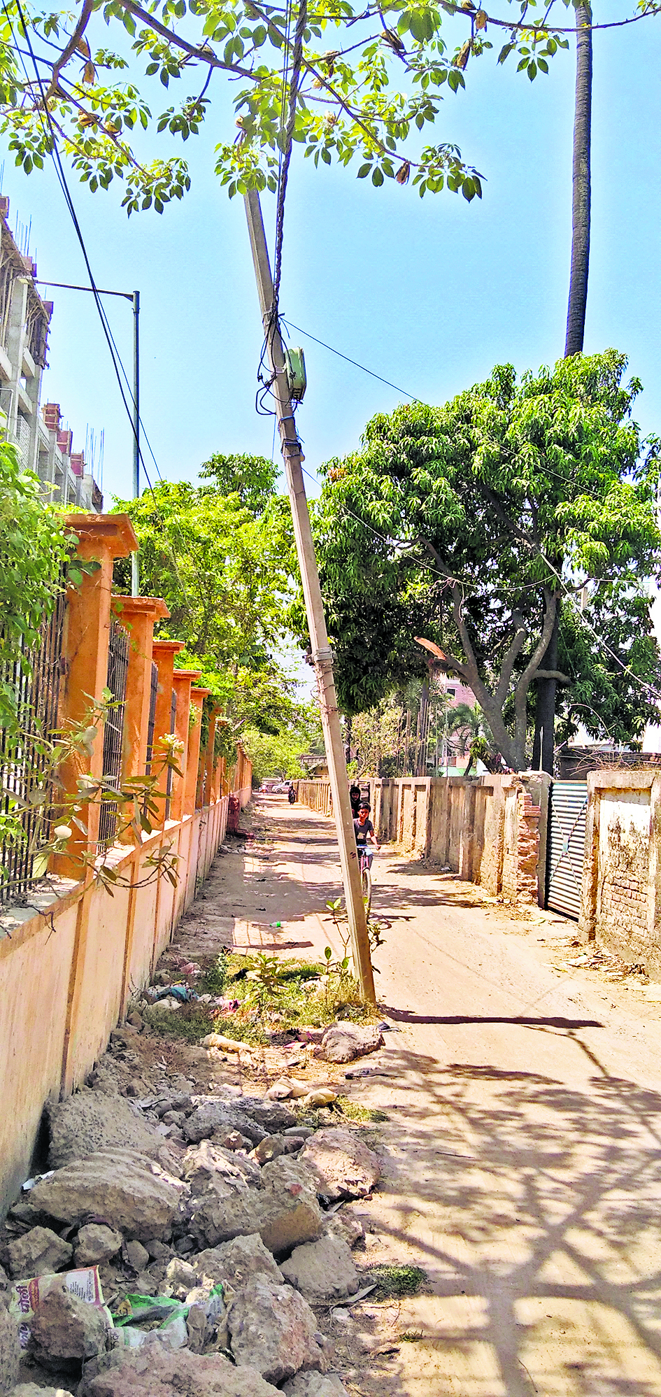 नगर के जढुआ रोड में स्थित कृषि उत्पादन बाजार समिति परिसर से सटे पश्चिम की सड़क, जो मेन रोड से उत्तर की ओर जाती है और समता कॉलोनी, बड़ी युसुफपुर, छोटी युसुफपुर से होकर पासवान चौक और एनएच को जाती है. बाजार समिति के निकट इस रोड में बिजली पोल खड़े होने के कारण फोर व्हीलर या बड़ी गाड़ियों के जाने-आने में परेशानी हो रही है. सड़क भी बुरी तरह क्षतिग्रस्त हो चुकी है, जिसमें बड़े-बड़े गड्ढे बन जाने से साइकिल, बाइक और पैदल यात्रियों का भी गुजरना मुश्किल हो रहा है. पूर्व में सड़क की चौड़ाई 10 फीट थी, लेकिन बाजार समिति की चहारदीवारी का निर्माण होने के दौरान स्थानीय नागरिकों की मांग पर पिछले साल सड़क की चौड़ाई बढ़ाकर 15 फीट कर दी गयी. चौड़ीकरण के बाद बिजली के तीन पोल सड़क के बीच आ गये, जिससे आवागमन में कठिनाई होने लगी. तीन में से एक पोल पिछले दिनों टूट कर सड़क पर गिर गया है. स्थानीय लोगों का कहना है कि विद्युत पोल की वजह से दुर्घटना की आशंका बनी रहती है. जनहित में इन पोलों को यथाशीघ्र सड़क से हटाने और टूट गये पोल की जगह नये पोल लगाने की आवश्यकता है. पूर्व में भी पोलों को हटाने के लिए सामूहिक आवेदन दिया गया था, लेकिन आज तक इस दिशा में कोई कार्रवाई नहीं हुई.