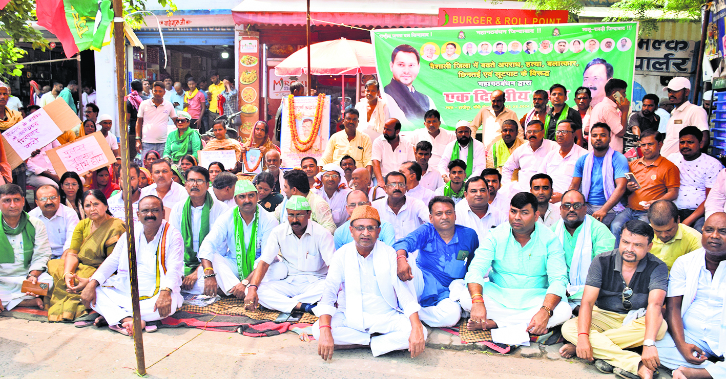हाजीपुर . जिले में बढ़ती आपराधिक घटनाओं के विरोध में बुधवार को शहर के गांधी चौक पर महागठबंधन ने धरना दिया. धरनासभा में महुआ विधायक डॉ मुकेश रौशन ने कहा कि आरोप लगाते हुए कि बिहार में आपराधिक घटनाएं रुकने का नाम नहीं ले रही हैं. भ्रष्टाचार भी अपने चरम पर पर है. बढ़ती आपराधिक घटनाओं से लोग सहमे हुए हैं. लगातार हत्या, लूट, बलात्कार, जहरीली शराब से मौत जैसी सैकड़ों घटनाएं हो चुकी हैं. पूरे बिहार में करीब 18 से ज्यादा पुल-पुलिया भ्रष्टाचार की भेंट चढ़ गये. वर्तमान में रामाशीष चौक के समीप जिस ओवरब्रिज का अभी उद्घाटन भी नहीं हुआ था, उस ओवरब्रिज पर दो जगहों पर पुल ध्वस्त हो गया. विधायक ने आरोप लगाया कि हत्या मामले में शामिल अपराधियों पर कार्रवाई के बदले पुलिस ने घटना को इधर-उधर घुमा फिरा कर लीपापोती कर दी जा रही है. वैशाली पुलिस को इस तरह की घटना के मूल तत्व तक जाने की जरूरत है. साथ ही उन्होंने कहा कि पुलिस सही अपराधियों को गिरफ्तार कर जेल भेजें नहीं तो राजद चरणबद्ध तरीके से सड़क से लेकर संसद तक आंदोलन करने के लिए बाध्यकारी होगा. धरना सभा में प्रदेश प्रवक्ता चितरंजन गगन ने कहा कि हाजीपुर नगर परिषद के वार्ड पार्षद पंकज राय व शिवनंदन कुमार जैसे होनहार छात्र की हत्या की घटना निंदनीय है. जब राजनीति लोग सुरक्षित नहीं हैं, घर में घुस के गोली मार दी जा रही है, तो आम अवाम का क्या होगा. उन्होंने कहा कि राज्य सरकार अपराधियों पर अंकुश नहीं लगा पा रही है. मुख्यमंत्री को अविलंब इस्तीफा दे देना चाहिए. उन्होंने कहा कि राष्ट्रपति शासन लगाने की जरूरत है. धरना के बाद डीएम-एसपी को आठ सूत्री मांगों का ज्ञापन सौंपा गया. धरनासभा की अध्यक्षता राजद जिला अध्यक्ष बैद्यनाथ चंद्रवंशी ने की. संचालन जिला प्रवक्ता रंजीत कुमार राय ने किया. इस अवार पर प्रदेश महासचिव देव कुमार चौरसिया, राजद नेता उपेंद्र राय, अति पिछड़ा के नेता विजय सहनी, प्रदेश महासचिव अनिल चंद्र कुशवाहा, प्रधान महासचिव संजय राय, युवा जिला अध्यक्ष संजय पटेल, वरिष्ठ उपाध्यक्ष राजेश कुमार शर्मा, चंदन चौधरी, महेश चौरसिया, सुचित्रा चौधरी, सरिता राय, संतोष चौधरी, नगर अध्यक्ष सुभाष यादव, राजेश ठाकुर, शहबाज सिद्दीकी, अर्चना यादव, जवाहर साह, पूर्व मुखिया सुशीला देवी, पूर्व जिला पार्षद नीलम देवी, पूर्व जिला पार्षद केदार राय, कृष्ण कुमार दास, लखेंद्र दास, कांग्रेस नेता उत्तम यादव, निर्दोष यादव, नीतीश कुमार, विजय विराज, विशाल यादव, नमेधारी राय, ललन साहू, मंगल राय, चंद्रभूषण सिंह कुशवाहा, दिवाकर कुमार, रामसागर चौधरी, सरफराज आदि मौजूद थे.