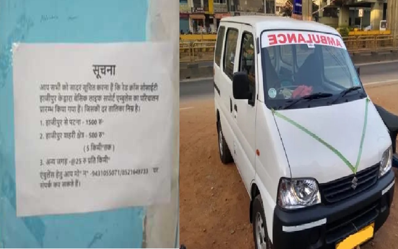 हाजीपुर सदर अस्पताल स्थित ब्लड बैंक कैंपस में चिपका एंबुलेंस रेट चर्चा का विषय बना हुआ है. यह पर्चा सदर अस्पताल कैंपस में बनी रेड क्रॉस सोसायटी की बिल्डिंग ब्लड बैंक में चस्पा किया गया है. स्वास्थ्य विभाग की ओर से एंबुलेंस सेवा बिल्कुल मुफ्त है. हालांकि इस विषय में रेडक्रॉस द्वारा एंबुलेंस की देखरेख और मेंटेनेंस के लिए किराया लेने की बात बतायी गयी है, वहीं अस्पताल अधीक्षक ने पूरे मामले में जांच और कार्रवाई की बात कही है.