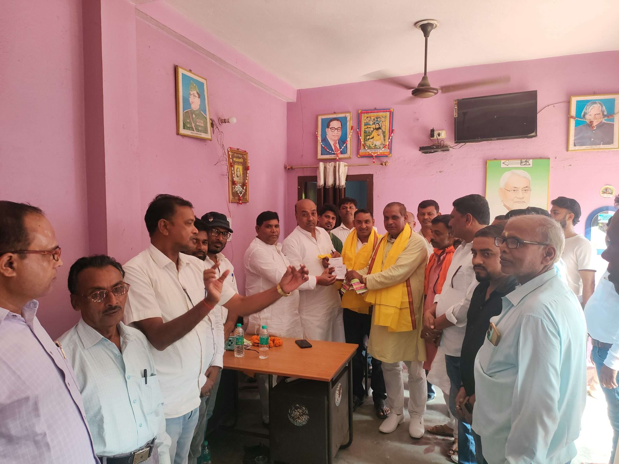 देसरी. प्रखंड क्षेत्र की भीखनपुरा पंचायत में जेडीयू प्रत्याशी के आवास पर रविवार को राजद के कार्यकर्ता ने जदयू का दामन थामा. बताया जा रहा है कि जेडीयू प्रत्याशी महेंद्र राम के आवास पर बाकरपुर निवासी राजकुमार राय, मंजय लाल राय अपने दर्जनों कार्यकर्ता के साथ राजद से त्यागपत्र देकर जदयू का दामन थामा. जिसे राजापाकर विधान सभा के प्रभारी सुदेश कुमार मुन्ना, एनडीए प्रत्याशी महेंद्र राम ने पार्टी की सदस्यता ग्रहण करवाया. इस मौके पर बीस सूत्री अध्यक्ष हरेन्द्र सिंह, प्रमुख आनंद कुमार, एनडीए के सभी प्रखंड अध्यक्ष मौजूद थे. इस दौरान राजकुमार राय ने कहा कि वह नीतीश कुमार के द्वारा किए जा रहे विकास कार्यों से प्रभावित को जेडीयू का सदस्यता ग्रहण किए है.