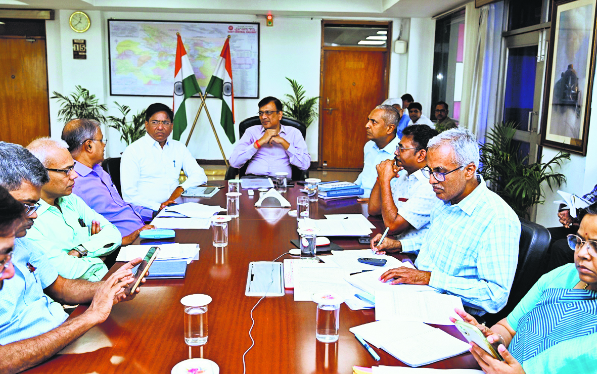 हाजीपुर. पूर्व मध्य रेल मुख्यालय हाजीपुर में मंगलवार को महाप्रबंधक छत्रसाल सिंह ने विभागाध्यक्षों और अन्य वरिष्ठ अधिकारियों के साथ उच्चस्तरीय बैठक की. इस बैठक में रेल संरक्षा, यात्री सुविधाएं और पूर्व मध्य रेल पर जारी आधारभूत संरचना विकास कार्यों की विस्तृत समीक्षा की गयी. बैठक के दौरान पावर प्वाइंट प्रजेंटेशन के माध्यम से अधिकारियों द्वारा अब तक की उपलब्धियों, प्रगति और निर्धारित लक्ष्यों की जानकारी महाप्रबंधक को दी गयी. महाप्रबंधक ने यात्री सुविधा, संरक्षा और सुरक्षा से संबंधित कार्यों की गहन समीक्षा करते हुए अधिकारियों को आवश्यक दिशा-निर्देश दिये.