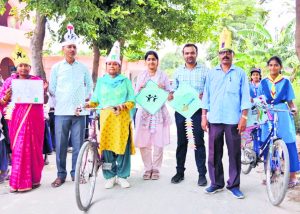 हाजीपुर. जिला निर्वाचन पदाधिकारी यशपाल मीणा के निर्देश पर जिला शिक्षा पदाधिकारी वीरेंद्र नारायण के मार्गदर्शन में भारत स्काउट एवं गाइड, वैशाली यूनिट की ओर से वैशाली लोकसभा क्षेत्र के गोरौल, पटेढ़ी बेलसर तथा वैशाली प्रखंड में विभिन्न प्रकार की गतिविधियों के माध्यम से मतदाताओं को जागरूक किया गया. वैशाली प्रखंड के मतैया उच्च विद्यालय के स्काउट-गाइडों ने गाइड कैप्टन अनु कुमारी के नेतृत्व में डोर-टू-डोर संपर्क अभियान तथा नुक्कड़ सभा आयोजित कर मतदाताओं से वोट करने का अनुरोध किया. वहीं गोरौल में साइकिल रैली निकालकर मतदाताओं को जागरूक किया गया. उधर आरपीसीजे उच्च माध्यमिक विद्यालय, बेलवरघाट की स्काउट-गाइड यूनिट ने साइकिल रैली निकाली. विद्यालय के प्रभारी प्रधानाध्यापक अरविंद कुमार शरण व स्काउट-गाइड के सहायक जिला सचिव धर्मेंद्र कुमार ने रैली को हरी झंडी दिखाकर रवाना किया. रोवर स्काउट लीडर उमेश कुमार प्रसाद सिंह के नेतृत्व में स्काउट-गाइडों ने विद्यालय के पोषक क्षेत्र में घूमकर सारे काम छोड़ दो, सबसे पहले वोट दो आदि नारे लगाते हुए मतदाताओं से अपने बूथ पर जाकर वोट करने की अपील की. साइकिल रैली विद्यालय परिसर से निकलकर कटरमाला पंचायत के गोढिया हाट, बहादुरपुर, आदमपुर, कटरमाला मध्य विद्यालय, बेलवर हाट होते हुए विद्यालय परिसर में आकर संपन्न हुई. लगभग छह किलोमीटर की साइकिल रैली में करीब पांच सौ स्कूली छात्राएं और स्काउट-गाइड कैडेट शामिल हुए.