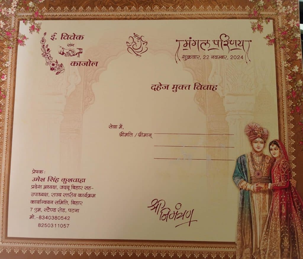 Wedding card: शादी कार्ड में दिया अनोखा संदेश, जदयू प्रदेश अध्यक्ष ने शुरू की अच्छी पहल