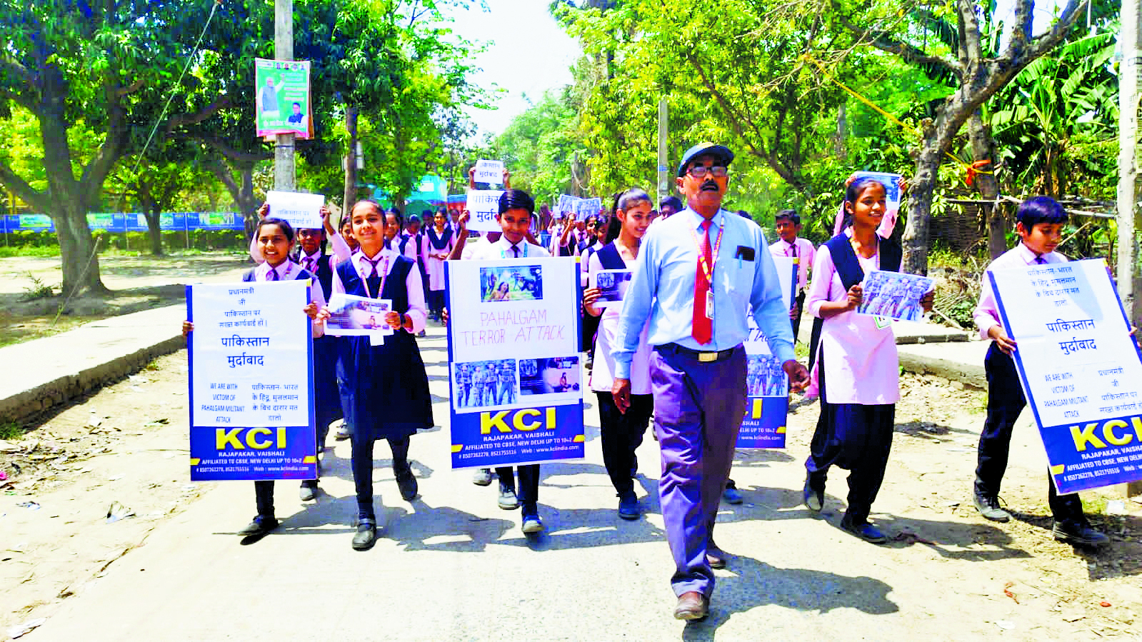 राजापाकर. जम्मू कश्मीर के पहलगाम में पर्यटकों की आतंकवादियों द्वारा जघन्य हत्या किए जाने की घटना पर राजापाकर प्रखंड क्षेत्र के बुद्धिजीवियों, समाजसेवियों, शिक्षाविदों और विभिन्न राजनीतिक दलों के लोगों ने गहरा आक्रोश व्यक्त किया है. उन्होंने केंद्र सरकार से मांग की है कि आतंकवादियों को शरण देने वाले पाकिस्तान को जल्द सबक सिखाया जाए. इसी क्रम में, केसीआई विद्यालय राजापाकर के शिक्षकों, शिक्षिकाओं और छात्र-छात्राओं ने भी इस आतंकवादी हमले के विरोध में आक्रोश जताया और विद्यालय में विरोध प्रदर्शन कर रैली निकाली. साथ ही आतंकी हमले में मारे गये लोगों को भावभीनी श्रद्धांजलि अर्पित की. यह रैली विद्यालय के निदेशक सत्य प्रकाश सिंह के निर्देशानुसार आयोजित की गयी, जिसकी अध्यक्षता पूर्व सैनिक सह शिक्षक महेंद्र राय ने की. विद्यालय के छात्रों और शिक्षकों ने हाथों में तख्तियां लेकर आतंकवाद मुर्दाबाद, शहीदों को सलाम, पाकिस्तान मुर्दाबाद जैसे नारे लगाए. इसके साथ ही, स्कूल परिसर में 2 मिनट का मौन रखकर शहीदों को श्रद्धांजलि दी गयी. विद्यालय के प्रधानाचार्य ने इस अवसर पर कहा कि यह समय देश के हर नागरिक के एकजुट होने का है. आतंकवाद मानवता का सबसे बड़ा शत्रु है और हम सबको मिलकर इसके खिलाफ आवाज उठानी होगी. यह विरोध प्रदर्शन न केवल आतंकी हमले की कड़ी निंदा थी, बल्कि यह भी स्पष्ट संदेश था कि भारत का हर नागरिक, हर बच्चा देश की अखंडता और सुरक्षा के लिए सजग और समर्पित है.