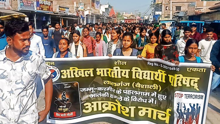 लालगंज. कश्मीर के पहलगाम में पाकिस्तान प्रायोजित आतंकवादियों द्वारा हिंदू नागरिकों की पहचान कर की गयी निर्मम हत्या के विरोध में अखिल भारतीय विद्यार्थी परिषद की लालगंज नगर परिषद इकाई द्वारा आक्रोश मार्च निकाला गया. सैकड़ों की संख्या में छात्र-छात्राओं ने इस मार्च में भाग लेकर आतंकवाद के खिलाफ कड़ा विरोध दर्ज कराया. यह आक्रोश मार्च कॉमर्स कॉलेज मैदान से प्रारंभ होकर गांधी चौक, महावीर चौक और लालगंज तीनपुलवा चौक से होते हुए पुनः कॉमर्स कॉलेज मैदान में पहुंचा, जहां यह एक सभा में परिवर्तित हो गया. मार्च का नेतृत्व एबीवीपी के विभाग संयोजक हर्ष सिंह और नगर मंत्री राजीव यादव ने संयुक्त रूप से किया। मार्च के दौरान युवाओं ने पाकिस्तान मुर्दाबाद, भारत माता की जय, वंदे मातरम्, जहां हुए बलिदान मुखर्जी, वह कश्मीर हमारा है और कश्मीर हो या गुवाहाटी-अपना देश, अपनी माटी जैसे नारों के साथ जोरदार प्रदर्शन किया. छात्रों ने तुम जातिवाद से तोड़ोगे, हम राष्ट्रवाद से जोड़ेंगे जैसे नारों से अपने राष्ट्र के प्रति निष्ठा और एकजुटता व्यक्त की. साथ ही पाकिस्तान प्रायोजित आतंकवाद की निंदा करते हुए यह संकल्प लिया कि मैं अपने देश के खिलाफ जाने वाली हर ताकत से लड़ने के लिए सदैव तैयार रहूँगा. सभा में एबीवीपी के पालक कार्यकर्ता अमरजीत सिंह, अवधेश सिंह, राकेश कुमार और रोहित कुमार ने भी छात्र-छात्राओं के साथ कंधे से कंधा मिलाकर हिस्सा लिया। इस अवसर पर एबीवीपी के निजी विश्वविद्यालय प्रांत प्रमुख मृत्युंजय कुमार और स्टूडेंट्स फॉर सेवा के प्रांत प्रमुख जितेंद्र यादव ने भी अपनी उपस्थिति दर्ज करायी.