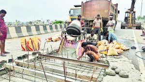 हाजीपुर-छपरा एनएच पर रामाशीष चौक के समीप नवनिर्मित ओवरब्रिज के क्षतिग्रस्त हिस्से को मंगलवार को दुरुस्त कर दिया गया. एनएचआइ व कार्य एजेंसी के पदाधिकारियों की मौजूदगी में दर्जनों मजदूरों ने मंगलवार को ओवरब्रिज के क्षतिग्रस्त हिस्से को करीब दस बाइ दस फुट के दायरे में दुबारा ढलाई कर उसकी मरम्मत की.
