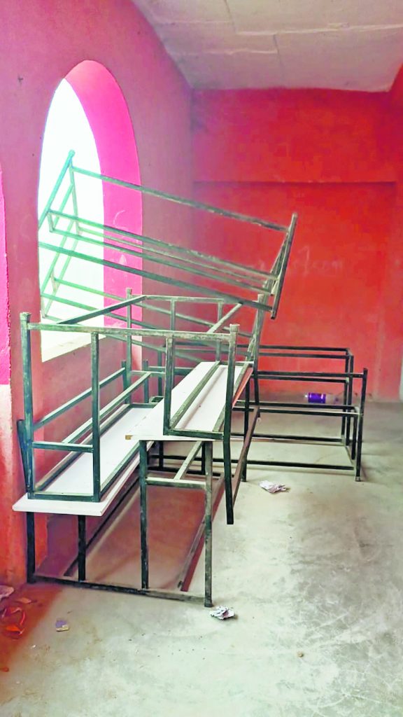 Hajipur News : पुलिस के जवानों ने स्कूल की बेंच डेस्क की तख्ती उखाड़ कर बनाया बेड