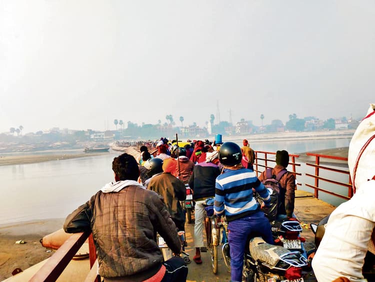 बताया जाता है कि सोमवार की सुबह करीब सात बजे पीपा पुल पर दो ओवरलोडेड मालवाहक वाहन आमने-सामने आ गये. वाहन पर क्षमता से अधिक सामान लोड होने की वजह से दोनों वाहनों को पीपा पुल पार करने में परेशानी हो रही थी. आमने-सामने से दोनों वाहन के फंस जाने की वजह से पीपा पुल पर भीषण जाम लग गया. पुल पर जाम लगने की वजह से दोनों ओर गाड़ियों की लंबी लाइन लग गयी. इस दौरन लोगों का पैदल चलना भी मुश्किल हो गया था. लोग किसी तरह पीपा पुल पार कर अपने गंत्वय की ओर रवाना होते दिखे. बाद में किसी तरह मालवाहक वाहन पर लोड सामान को एडजस्ट कर निकाला गया, तब जाकर सुबह 10 बजे के बाद धीरे-धीरे पीपा पुल पर जाम की समस्या से लोगों को थोड़ी राहत मिली. इस दौरान स्कूल-कॉलेज जाने वाले सरकारी शिक्षक, छात्र-छात्राएं, दैनिक मजदूरी करने वाले मजदूर, व्यापारी वर्ग, दूध सब्जी विक्रेता, सैकड़ों बूढ़े-बुजुर्ग, महिलाएं एवं बच्चे जाम में फंसे रहे. जाम में फंसे सरकारी शिक्षकों ने बताया कि ओवरलोड वाहनों के परिचालन के कारण जाम लगता है. जाम की वजह से स्कूल पहुंचने में काफी परेशानी होती है. समय से ऑनलाइन अटेंडेंस नहीं बना पाते हैं. शिक्षकों ने सुबह 6 से 10 बजे तक स्थानीय प्रशासन से पीपा पुल पर ओवरलोड वाहनों का परिचालन पर रोक लगाने की मांग की है.पुल के दूसरे लेन के धीमे निर्माण से भी हो रही परेशानी