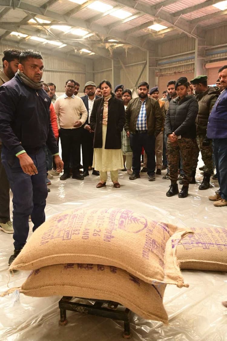 . महुआ प्रखंड कार्यालय परिसर में राज्य खाद्य निगम के अधिसूचित गोदाम सीएमआर संग्रहण केंद्र का उद्घाटन डीएम वर्षा सिंह ने किया. खरीफ विपणन मौसम 2025-26 के अंतर्गत पैक्सों द्वारा न्यूनतम समर्थन मूल्य पर किसानों से खरीदे गए धान का राइस मिलों में मिलिंग कर फोर्टीफायड चावल की आपूर्ति के लिए यह गोदाम तैयार किया गया है. इस अवसर पर डीएम ने कहा कि जिला के सभी किसान वांछित कागजात के साथ अपनी-अपनी पंचायत के पैक्स में उत्पादित धान को निर्धारित तिथि तक बिक्री करें. सरकार द्वारा साधारण धान के लिए 2369 रुपये प्रति क्विंटल और ग्रेड ए धान के लिए 2389 रुपये प्रति क्विंटल की राशि निर्धारित की गई है. पैक्स को क्रय धान का संबद्ध राइस मिल से फोर्टीफायड चावल तैयार करवाकर राज्य खाद्य निगम के सीएमआर संग्रहण केंद्र पर जमा करना होगा. डीएम ने कहा कि गुणवत्ता और पारदर्शिता से समझौता किसी भी स्थिति में स्वीकार्य नहीं होगा.डीएम ने सीएमआर संग्रहण केंद्र पर पदस्थ सहायक प्रबंधक एवं गुणवत्ता नियंत्रक को निर्देश दिया कि प्राप्त चावल की गुणवत्ता निर्धारित मानकों के अनुरूप हो, ताकि किसी प्रकार की शिकायत न हो. उन्होंने सीएमआर प्राप्ति की प्रक्रिया में विलंब न करने, अभिलेखों का सुव्यवस्थित संधारण करने, गोदाम परिसर की नियमित सफाई, भंडारण व्यवस्था और सुरक्षा मानकों का पूर्ण पालन सुनिश्चित करने पर जोर दिया.