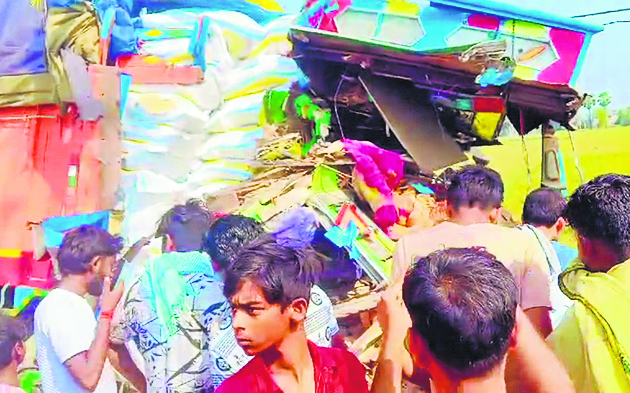 हाजीपुर . लालगंज थाना क्षेत्र के लालगंज-मुजफ्फरपुर मार्ग स्थित दिलावरपुर गांव के पास एक अनियंत्रित ट्रक एक पेड़ से टकरा गया. पेड़ से ट्रक टकराने से उसका चालक गंभीर रूप से घायल हो गया. घायल ट्रक चालक को लोगों ने इलाज के लिए सदर अस्पताल हाजीपुर में भर्ती कराया, जहां से डॉक्टर ने प्राथमिक उपचार के बाद पीएमसीएच रेफर कर दिया. पटना ले जाने के दौरान चालक की गांधी सेतु पर मौत हो गयी. मृतक भगवानपुर थाना क्षेत्र के बखरा खुर्द गांव निवासी बुटन पासवान का 26 वर्षीय पुत्र रंजन कुमार बताया गया है. युवक की मौत से परिजनों में कोहराम मच गया. घटना की सूचना पर मौके पर पहुंची पुलिस ने शव को पोस्टमार्टम के लिए सदर अस्पताल भेज दिया. पांच माह पूर्व ही उसके बड़े भाई की भी एक हादसे में मौत हो गयी थी. जानकारी के अनुसार ट्रक का चालक रंजन कुमार बीते बुधवार की दोपहर लालगंज से ट्रक पर सामान लोड कर मुजफ्फरपुर की ओर जा रहा था. इसी दौरान लालगंज थाना क्षेत्र के दिलावरपुर गांव के पास सामने से आ रही एक ट्रक के चालक ने चकमा दे दिया. जिससे रंजन का ट्रक अनियंत्रित होकर सड़क किनारे एक पेड़ से टकरा गया. टक्कर इतनी जबरदस्त थी कि ट्रक का अगला भाग पूरी तरह क्षतिग्रस्त हो गया.