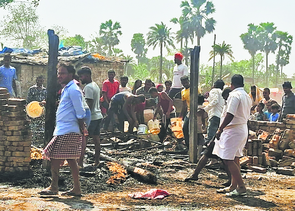 जंदाहा. जंदाहा प्रखंड की खोपी पंचायत के वार्ड संख्या पांच में शनिवार की दोपहर चूल्हे से निकली एक छोटी सी चिंगारी ने भीषण आग का रूप ले लिया, जिससे दो घर जलकर राख हो गये. इस घटना में बैद्यनाथ पासवान और विश्वनाथ पासवान के घर पूरी तरह से नष्ट हो गये और उनमें रखा सारा सामान भी जल गया. सूचना पर पहुंची फायर ब्रिगेड ने स्थानीय लोगों की मदद से काफी मशक्कत के बाद आग पर काबू पाया. जानकारी के अनुसार, शनिवार की दोपहर बैद्यनाथ पासवान के घर में खाना बनाया जा रहा था. इसी दौरान चूल्हे से निकली एक चिंगारी ने आग पकड़ ली. तेज पछुआ हवा के कारण आग तेजी से फैली और पास के विश्वनाथ पासवान के झोपड़ीनुमा घर को भी अपनी चपेट में ले लिया. देखते ही देखते आग की लपटें काफी तेज हो गयी. आग की तेज लपटें देख व अगलगी का शोर सुनकर वहां काफी संख्या में आसपास के लोग जुट गये. इस बीच, पंचायत के सरपंच पति राजीव कुमार साह ने अपनी पंपिंग सेट चलाकर आग पर काबू पाने की भरसक कोशिश की, लेकिन तेज हवा के कारण झोपड़ीनुमा घर देखते ही देखते जलकर खाक हो गया. आग को बेकाबू होता देख इसकी सूचना पुलिस और फायर ब्रिगेड को दी गयी. सूचना मिलने पर जंदाहा थाना से अग्निशमन की छोटी गाड़ी मौके पर पहुंची. इसके बाद फायर ब्रिगेड ने स्थानीय लोगों के सहयोग से काफी मशक्कत के बाद आग पर काबू पाया. जबतक आग पर काबू पाया जाता, तबतक दोनों घर और घर में रखा अनाज, कपड़ा, खाट, चौकी, बर्तन, जेवरात, महत्वपूर्ण कागजात और नकदी सहित लाखों रुपये की संपत्ति जल चुकी थी. इस घटना के बाद अग्निपीड़ितों का रो-रोकर बुरा हाल है.
