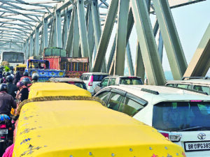 Hajipur News : गांधी सेतु के पूर्वी लेन में दो वाहन खराब, लगा जाम