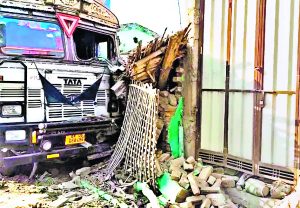 hajipur news. अनियंत्रित होकर घर में घुसा सीमेंट लोड ट्रक