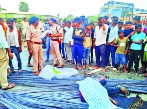 भगवानपुर. हाजीपुर-मुजफ्फरपुर एनएच-22 पर भगवानपुर थाना क्षेत्र के अड्डा चौक के उत्तर सब्जी मंडी के समीप सोमवार की शाम तेज रफ्तार कंटेनर ने इंजन चालित ठेला में टक्कर मार दी. घटना में ठेला चालक की मौके पर ही मौत हो गयी. मृतक की पहचान गोरौल थाना क्षेत्र के गोरौल निवासी अक्लु राम के पुत्र 30 वर्षीय संजय राम के रूप में हुई है. हादसे के बाद कंटेनर का चालक कंटेनर छोड़ कर मौके से भाग निकला. हादसे के बाद मौके पर जुटे लोगों ने घटना की सूचना पुलिस को दी. सूचना पर पहुंची पुलिस ने शव को पोस्टमार्टम के लिए सदर अस्पताल भेज दिया. वहीं घटना की सूचना मिलते ही परिजनों में कोहराम मच गया. जानकारी के अनुसार सोमवार की शाम संजय राम ठेला पर सरिया लोड कर भगवानपुर से गोरौल की ओर जा रहा था. इसी दौरान पीछे से आ रहे कंटेनर ट्रक के चालक ने नियंत्रण खो दिया और ठेला में जोरदार टक्कर मार दी. टक्कर इतनी भीषण थी कि ठेला पलट गया और सरिया के नीचे दबने से चालक का सिर कुचल गया, जिससे उसकी मौके पर ही मौत हो गयी. हादसे के बाद वहां आसपास के लोगों की भीड़ जुट गयी. घटना की सूचना मिलते ही भगवानपुर थाना की पुलिस मौके पर पहुंच गयी. पुलिस ने शव को कब्जे में लेकर पोस्टमार्टम के लिए सदर अस्पताल, हाजीपुर भेज दिया. हादसे के बाद ट्रक चालक गाड़ी छोड़कर मौके से फरार हो गया. पुलिस ने दुर्घटनाग्रस्त कंटेनर ट्रक और ठेला को जब्त कर थाना ले गयी और मामले की जांच शुरू कर दी. शव पोस्टमार्टम के लिए भेजे जाने के बाद मृतक संजय राम के परिजन घटनास्थल पर पहुंचे और चीत्कार मारकर रोने लगे.