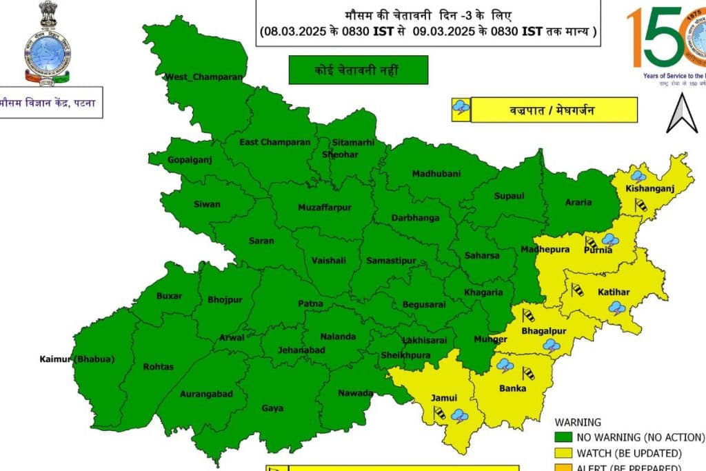 9 मार्च को एक नया वेस्टर्न डिस्टर्बेंस एक्टिव होने जा रहा है. जो पश्चिमी हिमालय क्षेत्र से बिहार के मौसम पर असर डालेगा. इसकी वजह से प्रदेश के कुछ जिलों में मौसम में बड़ा बदलाव देखने को मिल सकता है. वैज्ञानिकों का कहना है कि पछुआ हवाओं की वजह से मौसम शुष्क बना रहेगा, लेकिन अचानक होने वाले बदलाव से लोगों को सतर्क रहने की जरूरत है.