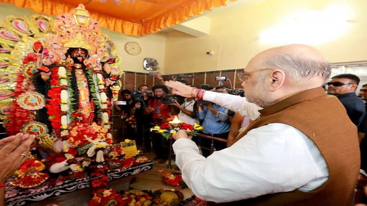 काली मंदिर में अमित शाह ने पूरे विधिवत तरीके से पूजा-अर्चना की.