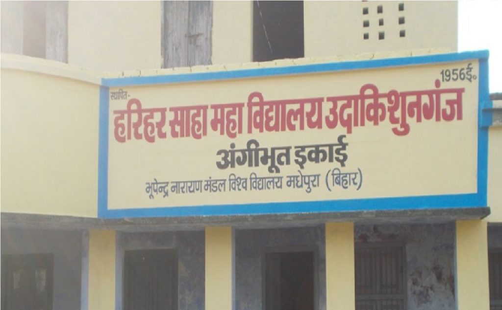 उदाकिशुनगंज के लिए एक धरोहर हुआ करता था कॉलेज वर्तमान राष्ट्रीय क्षितिज में शिक्षा के गुणात्मक विकास व प्रसार की प्रतिबद्धता प्रदर्शित करते हुए उदाकिशुनगंज मुख्यालय स्थित हरिहर साहा महाविद्यालय की स्थापना की गई है. महाविद्यालय जो एक समय मे उदाकिशुनगंज के लिए एक धरोहर हुआ करता था, लेकिन कुछ सालों में इसकी तस्वीर ही कुछ उल्टी सी हो गई है. एक धरोहर को मिटाने की हो रही साजिश विवि प्रशासन की उपेक्षा का दंश झेल रहा कॉलेज अनुमंडल क्षेत्र का एक मात्र अंगीभूत हरिहर साहा महाविद्यालय विश्वविद्यालय प्रशासन के उदासीनता और सरकार की उपेक्षापूर्ण नीति का शिकार हो रहा है. इतना ही नहीं महाविद्यालय स्थापना काल से ही अपेक्षा का दंश झेल रहा है. जबकि यह कॉलेज बीएनएमयू विवि का एक अंगीभूत इकाई है.