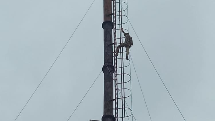 पुलिस भी नीचे उतरने का करती रही आग्रह