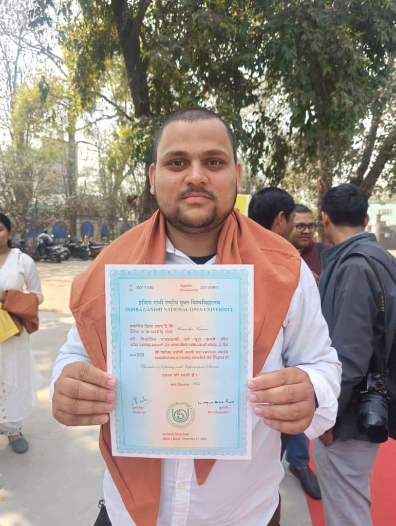 लाइब्रेरी साइंस की डिग्री प्राप्त किया. काफी खुशी मिल रही है. डिस्टेंस लर्निंग से भी बेहतर शिक्षा हासिल की जा सकती है. – विपुल कुमार, मधेपुरा
