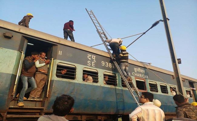 जमुई : झाझा क्यूल रेलखंड के मध्य स्थित गिद्धौर रेलवे स्टेशन के अपलाइन पर पोल संख्या 376/31 से 377/7 के बीच कॉन्टेन्ट्री वायर टूट जाने से झाझा स्टेशन की और से आ रही टाटा दानापुर एक्सप्रेस आउटर के पास दुर्घटनाग्रस्त होने से बाल-बाल बची. जानकारी के अनुसार गिद्धौर स्टेशन स्थित आउटर के समीप उक्त पोल के बीच बिजली का हाइ टेंशन कॉन्टेन्ट्री वायर टूट कर लटका हुआ था. टाटा दानापुर एक्सप्रेस के चालक चंद्र किशोर सहाय और सहायक चालक प्रवीण कुमार की नजर अचानक इस पर पड़ी. चालक ने अचानक इमरजेंसी ब्रेक एवं पेंट्रो दबाकर गाड़ी को रोकने का प्रयास किया. तभी गाड़ी करीब 25 मीटर आगे बढ़ कर रुक गयी. तभी इसकी सूचना गिद्धौर रेल प्रबंधन को दिया.