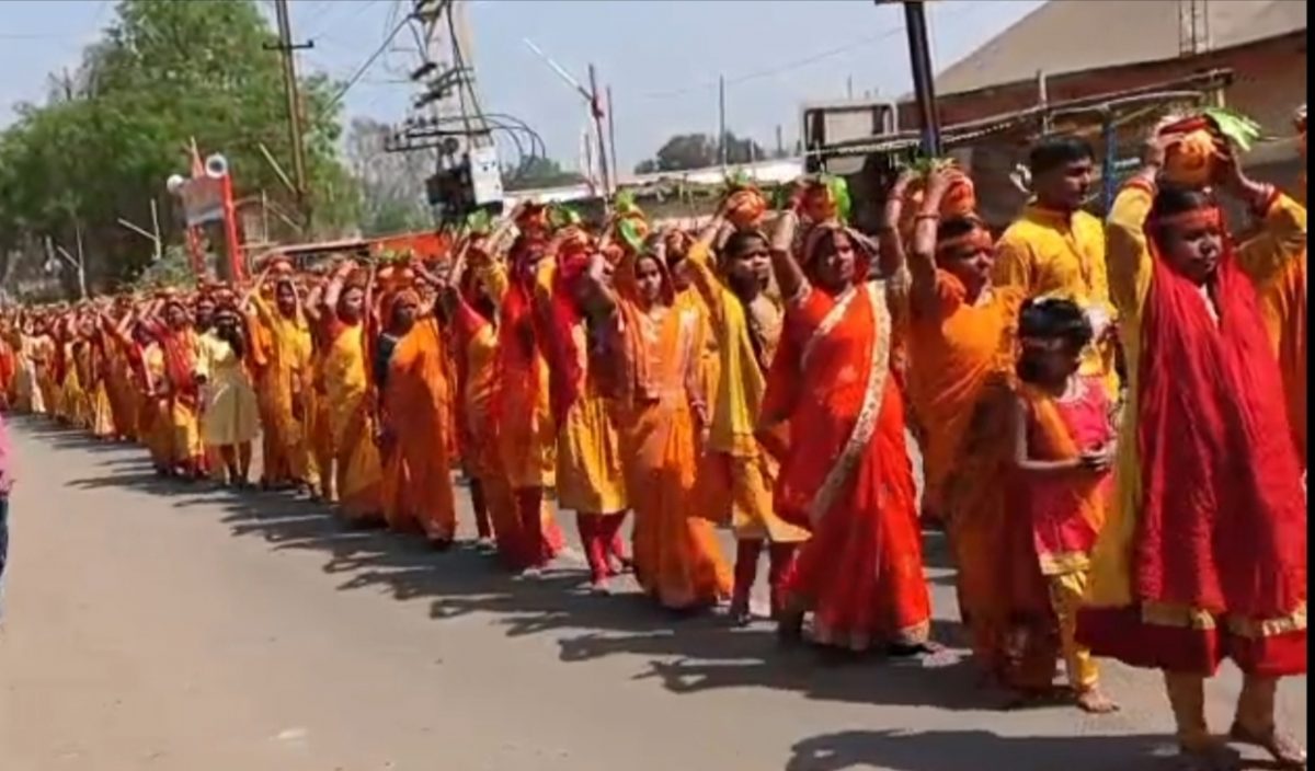 माथे पर कलश लेकर किया वेदमाता का जयघोष, भक्ति में डूबा सानो का कोना-कोना