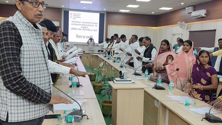 जमुई. समाहरणालय स्थित सभा कक्ष में गुरुवार को विकसित भारत गारंटी फॉर रोजगार एवं आजीविका मिशन (ग्रामीण) के तहत एक दिवसीय कार्यशाला आयोजित हुई. कार्यक्रम की अध्यक्षता जिलाधिकारी श्री नवीन ने की. कार्यशाला की शुरुआत दीप प्रज्वलन के साथ हुई, इसके बाद उपस्थित पदाधिकारियों एवं जनप्रतिनिधियों को शपथ दिलायी गयी. जिलाधिकारी ने कहा कि कार्यशाला का मुख्य उद्देश्य ग्रामीण अर्थव्यवस्था को मजबूत करना, बुनियादी ढांचे का विकास करना व ग्रामीण क्षेत्रों में रोजगार के अवसरों का विस्तार करना है. उन्होंने बताया कि प्रस्तावित योजना के तहत रोजगार के दिनों को 100 से बढ़ाकर 125 दिन तक सुनिश्चित करने की दिशा में कार्य किया जायेगा. उन्होंने कहा कि ग्रामीण विकास, जल संरक्षण, सड़क निर्माण सहित आधारभूत सुविधाओं के विस्तार के माध्यम से गांवों को आत्मनिर्भर बनाने का लक्ष्य निर्धारित किया गया है. यह पहल विकसित भारत 2047 के विजन से जुड़ी हुई है, जिसके माध्यम से गांवों की आर्थिक स्थिति को सशक्त बनाने पर विशेष जोर दिया जा रहा है. कार्यशाला के दौरान जिले के विभिन्न पंचायतों के मुखियाओं एवं संबंधित अधिकारियों को योजना की विस्तृत जानकारी दी गयी. जिलाधिकारी ने निर्देश दिया कि सभी जनप्रतिनिधि गांव-गांव जाकर लोगों को योजना से अवगत कराएं, ताकि अधिक से अधिक ग्रामीणों को इसका लाभ मिल सके. उन्होंने बताया कि यह मिशन ग्रामीण रोजगार सृजन को बढ़ावा देने की दिशा में कार्य करेगा और मनरेगा के पूरक रूप में रोजगार अवसरों के विस्तार पर ध्यान केंद्रित करेगा. कार्यक्रम में जिला स्तरीय पदाधिकारी, पंचायत प्रतिनिधि एवं संबंधित विभागों के कर्मी मौजूद रहे.