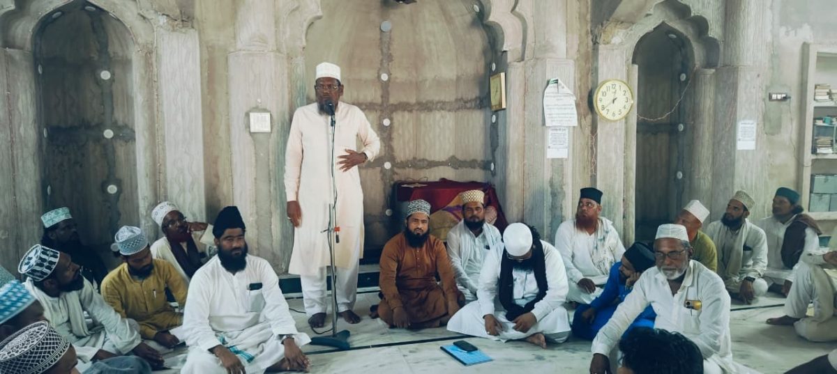 जमुई . शहर स्थित गौसिया मस्जिद परिसर में गुरुवार को सुन्नी उलेमा बोर्ड के सदस्यों की बैठक मौलाना मोइनुद्दीन कादरी की अध्यक्षता में की गयी. बैठक में मुख्य रूप से मोहम्मद साहब की 1500वीं जयंती कार्यक्रम को सफल बनाने को लेकर विचार-विमर्श किया गया. मौके पर सुन्नी उलेमा बोर्ड के सचिव जियाउल रसूल गफ्फारी ने बताया कि आगामी 5 सितंबर को मोहम्मद साहब की जयंती कार्यक्रम पर जुलूस निकाला जायेगा. इस दौरान मोहम्मद साहब के उपदेश आपसी भाईचारा और शांति का संदेश देते हुए गुलाब फूल का वितरण किया जायेगा. उन्होंने बताया कि जुलूस ईदगाह के मैदान से निकल कर निर्धारित रूट से बाजार का भ्रमण करेगा. बैठक में मो मुफ्ती सज्जाद, मुफ्ती तस्लिम रजा, मुफ्ती ईमान उद्दिन, कारी ताजिम नोमानी, मौलाना अफजल, मौलाना फहिम अख्तर, मौलाना साहिल अख्तर सहित अन्य बुद्धिजीवी उपस्थित थे.